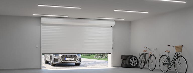 RollMatic-rolpoorten gaan verticaal open en hebben nauwelijks ruimte nodig in de garage.