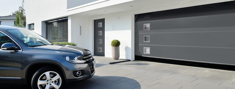 Les portes sectionnelles s’ouvrent à la verticale et se positionnent sans encombrement sous le plafond. Grâce à ce principe de construction, elles offrent un espace de stationnement maximal, aussi bien dans que devant le garage. Les portes de garage sectionnelles s’adaptent à toutes les baies et offrent jusqu’à 14 cm supplémentaires de passage libre que les portes basculantes. En outre, elles sont parfaitement étanches grâce aux joints à élasticité durable et résistants aux intempéries montés sur les quatre côtés.