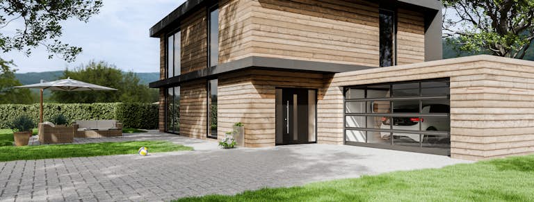 Pour les maîtres d’ouvrage ou dans le cadre de rénovations, s’il est très important que la porte de garage soit généreuse et élégante, la porte à cadre en aluminium est en tout cas le bon choix. Les portes à cadre en aluminium sont une bonne alternative aux portes de garage sectionnelles fermées et sont souvent utilisées dans les garages nécessitant plus de lumière ou dans les garages collectifs dont les places de stationnement doivent bénéficier d’une meilleure aération. La combinaison cadre en aluminium et vitrage grand format assure un aspect harmonieux de la porte et plus de luminosité dans le garage. Les espaces vitrés sont très robustes, grâce au revêtement Duratec particulièrement résistant aux rayures et disponible uniquement chez Hörmann.