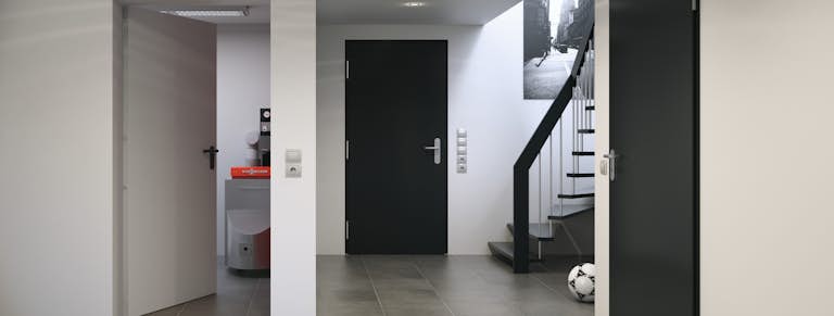 Qu’il s’agisse d’une construction ou d’une rénovation, Hörmann vous propose la porte adaptée à chaque pièce de la maison. Portes de sécurité pour l’accès à la cave ou au garage, portes coupe-feu pour la chaufferie ou portes multifonctionnelles pour votre atelier de bricolage : nos portes en acier haut de gamme vous procurent un véritable sentiment de bien-être et de sécurité dans votre maison. Découvrez tous les avantages et toutes les fonctions de nos portes en acier et leurs possibilités de configuration personnalisées.