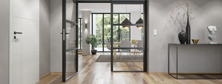 Les portes en verre sont un véritable accroche-regard et, grâce à leur élégance minimaliste, elles offrent une sensation d’espace particulière et adaptée aux tendances d’intérieur actuelles. Elles sont utilisées dans le cadre de projets de nouvelle construction et de rénovation dans des appartements tout comme dans des maisons individuelles et à deux logements.